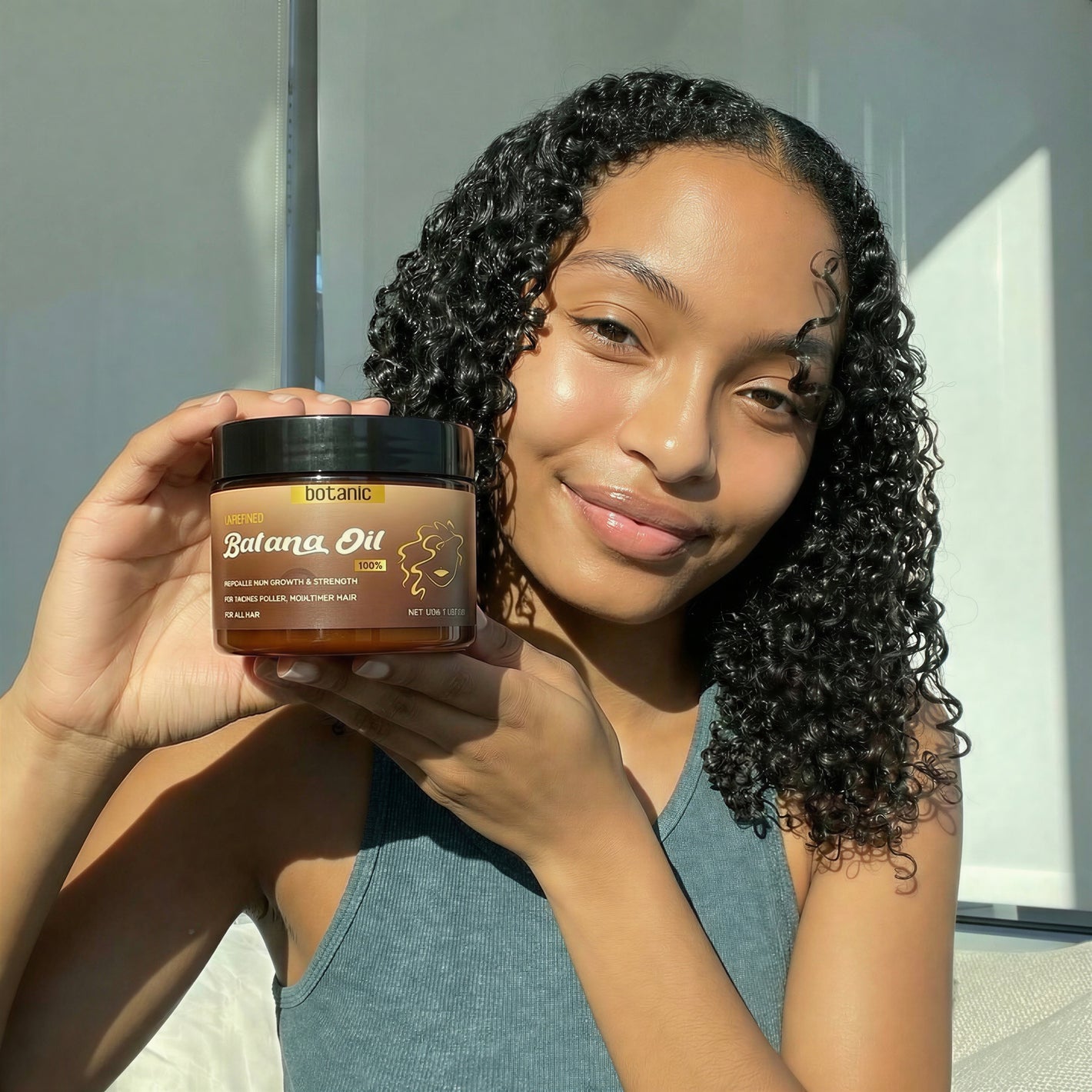 Our formula is powered by 100% Unrefined Batana Oil, a single, carefully sourced ingredient that targets hair growth holistically